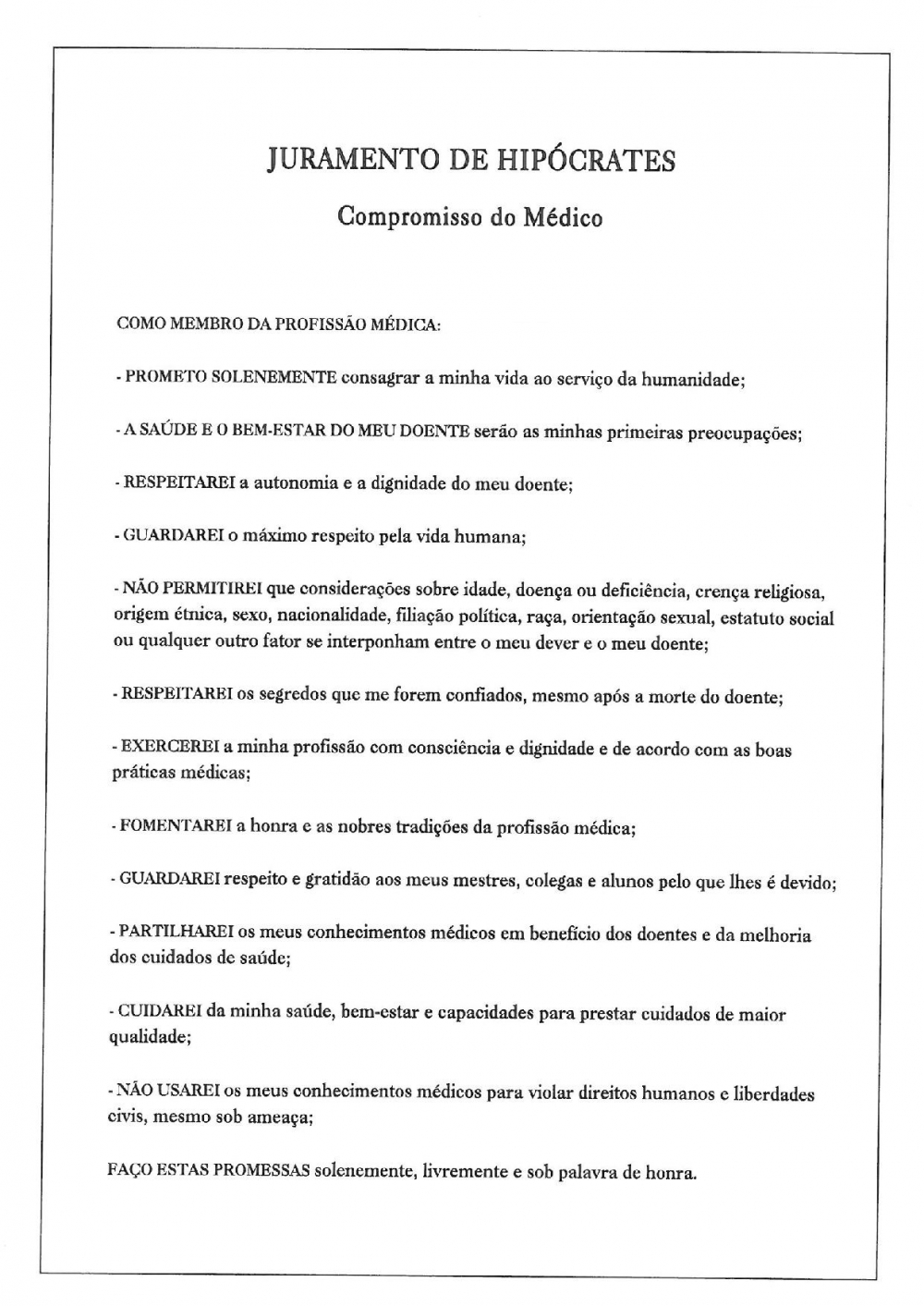 Pela primeira vez em Portugal, este compromisso solene baseou-se no novo texto do Juramento de Hipócrates, novidades introduzidas pela Associação Médica Mundial na reunião realizada em Chicago (Estados Unidos da América), em outubro.