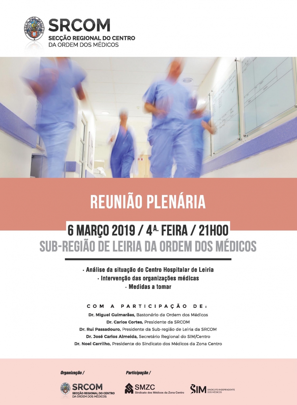 A Ordem dos Médicos irá promover uma reunião, no próximo dia 6 de março, a partir das 21h00, na sede da sub-região de Leiria, entre os médicos daquela unidade hospitalar e todos os representantes (Ordem dos Médicos, Sindicato Independente dos Médicos e Sindicato dos Médicos da Zona Centro).