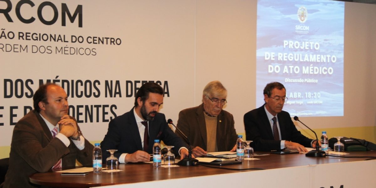 O debate, que decorreu ao final da tarde do dia 11 de abril, foi moderado pelo Médico psiquiatra António Reis (que fez parte da primeira comissão que negociou o Ato Médico, por nomeação do Conselho Nacional Executivo para negociar a legislação sobre o Ato Médico; presidente do Conselho Regional do Centro Ordem dos Médicos, de 1999 a 2004). Foram oradores: o bastonário da OM, Miguel Guimarães, o presidente da Secção Regional do Centro da Ordem dos Médicos, Carlos Cortes, e do professor de Faculdade de Direito da Universidade de Coimbra, André Dias Pereira.