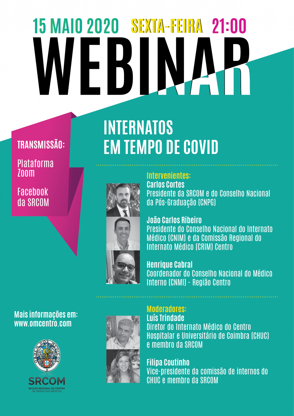 A Secção Regional do Centro da Ordem dos Médicos (SRCOM) organiza e promove, sexta-feira, 15 de maio, pelas 21h00, o debate com transmissão digital dedicado ao tema "Internatos em tempo de COVID".