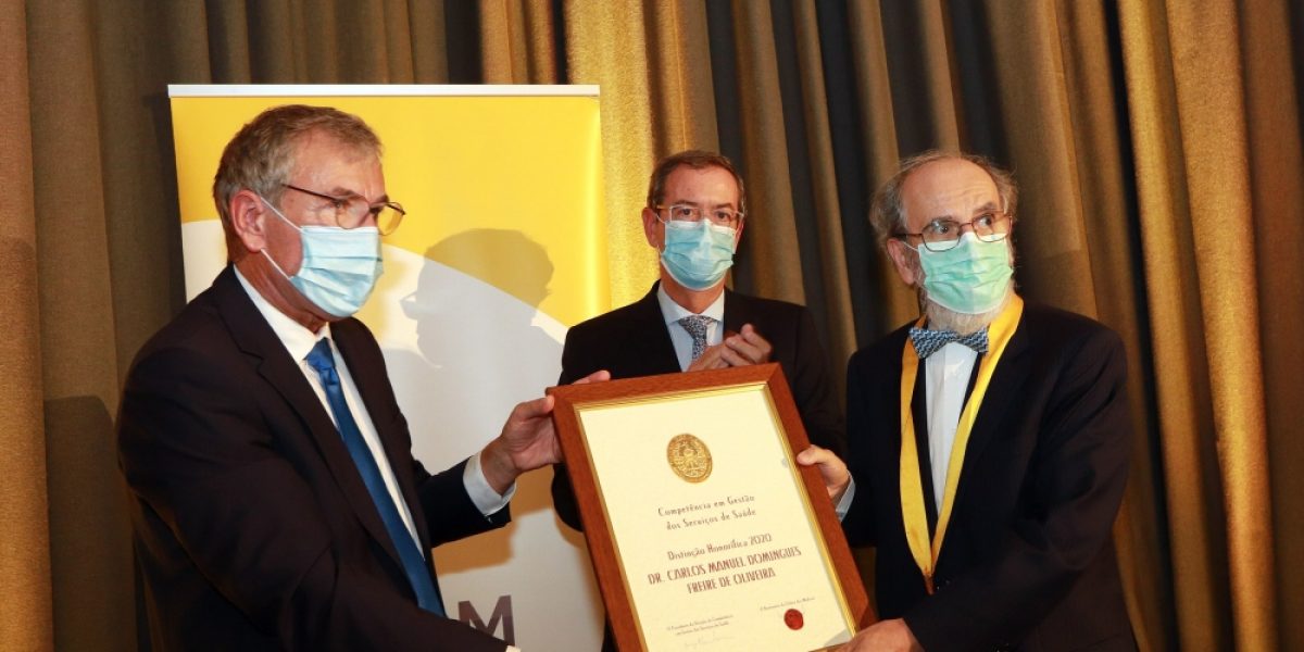 Carlos de Oliveira, professor catedrático da Faculdade de Medicina da Universidade de Coimbra, que durante 40 anos dirigiu o serviço de Ginecologia dos Hospitais da Universidade de Coimbra (HUC) e foi, durante vários anos, um dos rostos da Liga Portuguesa contra o Cancro (LPCC) recebeu a Distinção de Mérito em Gestão de Serviços de Saúde da Ordem dos Médicos: diploma e medalha.