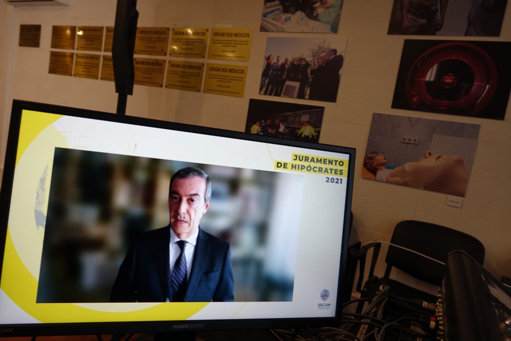 Miguel Guimarães considerou que, mesmo estando à distância, está com os mais novos: “Estamos juntos. Juntos, a cumprir as normas da DGS para dar um exemplo à sociedade civil. Juntos, na defesa da saúde pública e das pessoas. Juntos, na defesa dos princípios e dos valores em que acreditamos. Juntos, no apoio aos nossos colegas que têm a missão de cuidar, tratar e proteger os nossos doentes”. O bastonário enfatizou, falando para os jurandos, que este é um dia especial, “um dia em que se renova a inspiração de ser médico”.