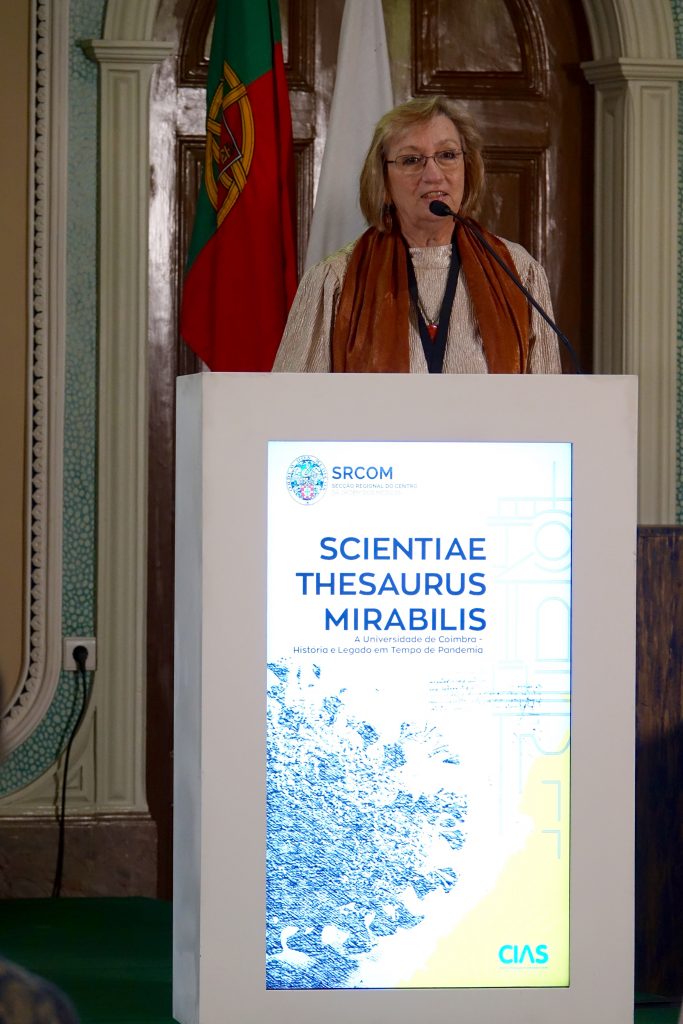 Maria do Sameiro Barroso, Presidente do Núcleo de História da Medicina da Ordem dos Médicos, considerou ser um dia muito feliz para quem gosta de História da Medicina, citando a presença e o apoio de três bastonários na sala: Miguel Guimarães, Germano de Sousa e António Gentil Martins. Ao atual bastonário dirigiu umas especiais palavras de agradecimento por ter dado destaque aos médicos de família durante a pandemia. Por outro lado, classificou de prioritária a necessidade de “pensar nos médicos também como agentes de cultura e de investigação”. Por outro lado, defendeu que a Universidade de Coimbra “merecia e merece mais atenção”, agradecendo ao Professor Alfredo Rasteiro a ideia de escrever um livro e também ao presidente da SRCOM, Carlos Cortes, por ter acolhido esta iniciativa. “Coimbra é um museu vivo, tem preciosidades que devem ser trazidas à luz” do dia. Um tema aliás foi acrescentado ao programa do congresso, o da museologia médica.