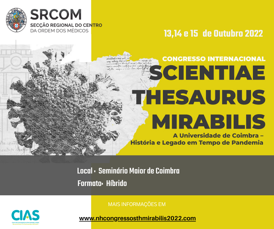 Em tempo de pós-pandemia, a reflexão impõe-se, bem como uma revisitação do passado. Como terminaram as pandemias da História? – interrogamo-nos. A Ordem dos Médicos não podia deixar de responder a este desafio, propondo também uma reflexão sobre a História da Universidade de Coimbra, uma das mais antigas da Europa. Nesse sentido, vai realizar-se o Congresso Internacional “Scientiae thesaurus mirabilis: A Universidade de Coimbra – História e legado em tempo de pandemia”, nos dias 13,14 e 15 de Outubro de 2022 em Coimbra, evento coorganizado pela Secção Regional do Centro da Ordem dos Médicos, pelo Núcleo de História da Medicina da Ordem dos Médicos e pelo Centro de Investigação em Antropologia e Saúde da Universidade de Coimbra,