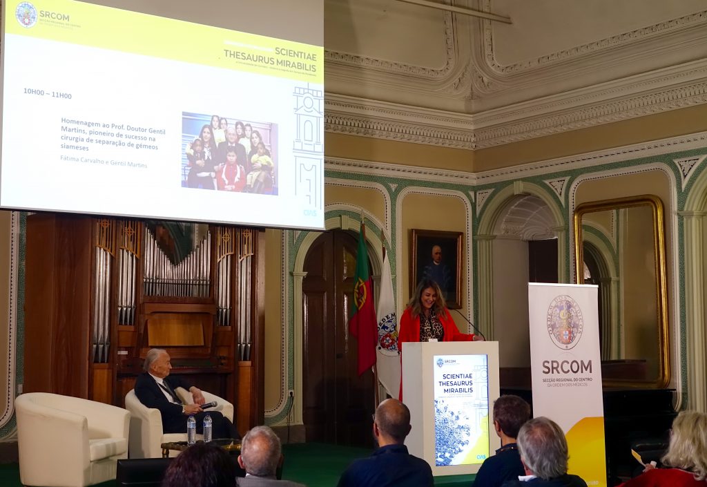“Para além de um nome, temos uma obra que o torna imortal”, disse Fátima Carvalho (médica especialista em Cirurgia Pediátrica e diretora de Serviço Cirurgia Pediátrica do Centro Materno-infantil do Norte / Centro Hospitalar e Universitário do Porto), ao falar do notável percurso do médico cirurgião. Ao fazer um resenha do notável percurso do ex-bastonário da Ordem dos Médicos, Fátima Carvalho, destacou o pioneirismo e o empenho na defesa dos doentes. “Também escolhi a especialidade de cirurgia pediátrica e habituei-me a vê-lo sentado na primeira fila das reuniões científicas nacionais e internacionais, sempre com algo a dizer. Falar do Professor Gentil Martins é, sem dúvida, sentir o percurso de uma figura ímpar da sociedade portuguesa. É inegável que para a maioria dos portugueses Gentil Martins ficará na História por ter liderado a equipa que, pela primeira vez, em Portugal, separou gémeas siamesas com sucesso”. Com efeito, a 30 de outubro de 1978, no Hospital Dona Estefânia, Gentil Martins realizou um dos maiores êxitos da História da Medicina portuguesa: separar com sucesso duas crianças siamesas. “Ainda hoje, as irmãs expressam gratidão eterna a Gentil Martins por lhes ter permitido viver”, destacou.