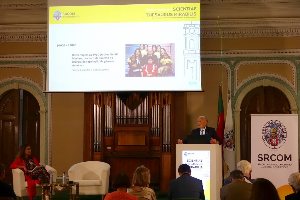 O Professor Doutor António Gentil Martins, antigo bastonário da Ordem dos Médicos, cirurgião plástico e cirurgião e oncologista pediátrico, foi homenageado, no primeiro dia do Congresso Internacional 𝐒𝐜𝐢𝐞𝐧𝐭𝐢𝐚𝐞 𝐓𝐡𝐞𝐬𝐚𝐮𝐫𝐮𝐬 𝐌𝐢𝐫𝐚𝐛𝐢𝐥𝐢𝐬. 𝐀 𝐔𝐧𝐢𝐯𝐞𝐫𝐬𝐢𝐝𝐚𝐝𝐞 𝐝𝐞 𝐂𝐨𝐢𝐦𝐛𝐫𝐚 – 𝐇𝐢𝐬𝐭𝐨́𝐫𝐢𝐚 𝐞 𝐋𝐞𝐠𝐚𝐝𝐨 𝐞𝐦 𝐓𝐞𝐦𝐩𝐨 𝐝𝐞 𝐏𝐚𝐧𝐝𝐞𝐦𝐢𝐚, em Coimbra.