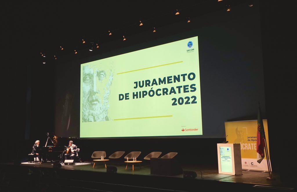 Depois de se executar piano e guitarra dos CORDIS, a Secção Regional do Centro da Ordem dos Médicos convidou todos os jurandos a assumir formalmente de alma e coração esta missão de ser médico, num vídeo a marcar este dia especial para todos após anos de estudo e dedicação. “É com muito orgulho que vos acolhemos sob compromisso hipocrático”, lia-se no vídeo com ‘assinatura’ dos presidentes do Conselho Regional do Centro, das seis sub-regiões e do bastonário. Missão, coragem, dedicação, entrega foram as palavras que antecederam todas as fotografias dos jurandos, finalizadas com o desejo de muito sucesso para todos!