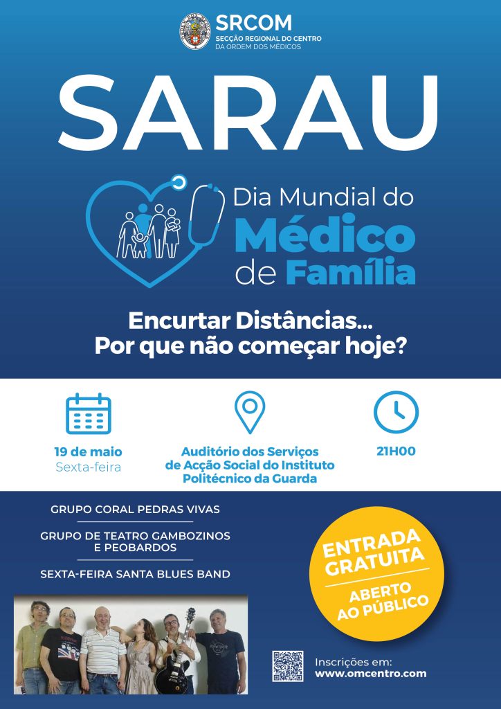 A Secção Regional do Centro da Ordem dos Médicos promoveu, no dia 19 de maio, o Sarau Comemorativo do Dia Mundial do Médico de Família, com o lema “Encurtar Distâncias…Por que não começar hoje?”, prestando tributo a estes profissionais que são um dos pilares dos cuidados de saúde. O sarau de homenagem decorreu no auditório dos Serviços de Ação Social do Instituto Politécnico da Guarda (Rua Soeiro Viegas), a partir das 21h00, com as intervenções de Manuel Teixeira Veríssimo, Presidente da Secção Regional do Centro da Ordem dos Médicos; João Silva, Presidente da Sub-região da Guarda da Ordem dos Médicos; Gil Correia, Tesoureiro da Associação Portuguesa de Medicina Geral e Familiar.