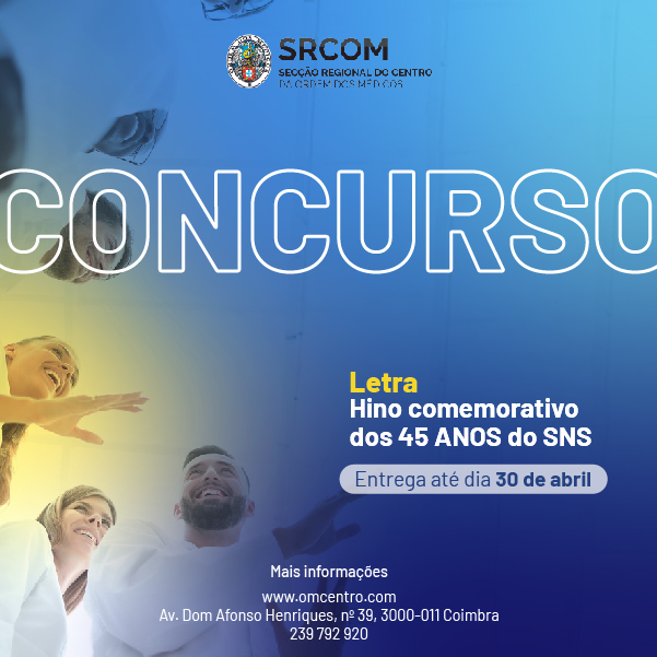 A Secção Regional do Centro da Ordem dos Médicos abre concurso para a criação da letra do Hino Comemorativo dos 45 anos do SNS, que será musicado pelo compositor Paulo Bernardino, maestro do Coro da SRCOM. O concurso tem como principal objetivo estimular a criação de originais para o hino do SNS.