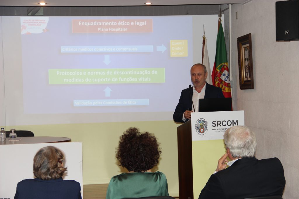 Foram oradores, a médica intensivista Ana França, Ex-Coordenadora Nacional da Transplantação do Instituto Português do Sangue e da Transplantação, IP. e perita de várias instituições internacionais nesta área, que realizou a contextualização da Doação de órgãos em paragem circulatória controlada; Eduardo Sousa, Médico especialista em Medicina Intensiva da ULS Coimbra, coordenador hospitalar de doação, que abordou a operacionalização; André Dias Pereira, Professor da Faculdade de Direito da Universidade de Coimbra, presidente do Centro de Direito Biomédico da Universidade de Coimbra e vice-presidente do Conselho Nacional de Ética e Ciências da Vida.