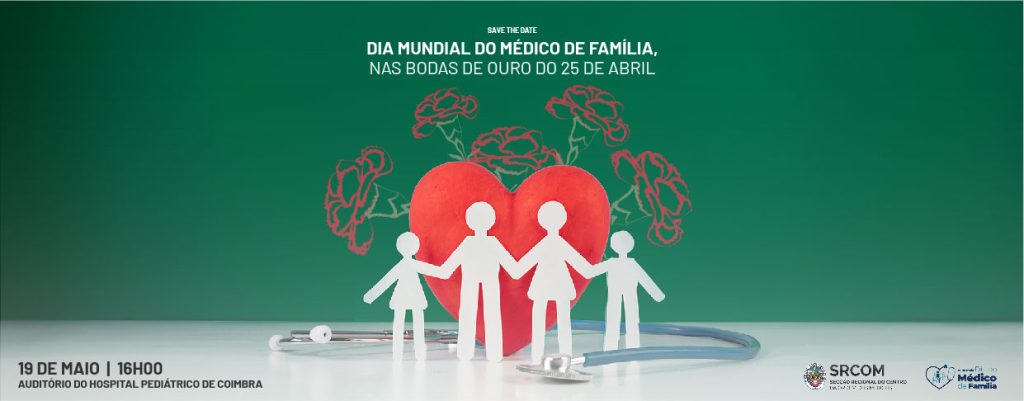A Secção Regional do Centro da Ordem dos Médicos assinala, no dia 19 de maio, o Dia Mundial do Médico de Família, com o lema “Dia Mundial do Médico de Família, nas Bodas de Ouro do 25 de abril“, prestando tributo a estes profissionais que são um dos pilares dos cuidados de saúde. Para assinalar esta data, vai ter lugar no Auditório do Hospital Pediátrico de Coimbra, uma sessão da partir das 16h00, e que contará com o testemunho de quem foi médico de família antes do período vigente da Democracia. O evento contará com a participação de um grupo de teatro infantil, Move Junior, do Coro da SRCOM e do grupo Fado ao Centro.