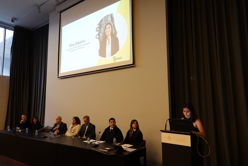 Foram também oradores Rita Ribeiro, presidente da Associação Nacional dos Estudantes de Medicina; Cármen Oliveira, presidente cessante do NEM/AAC;