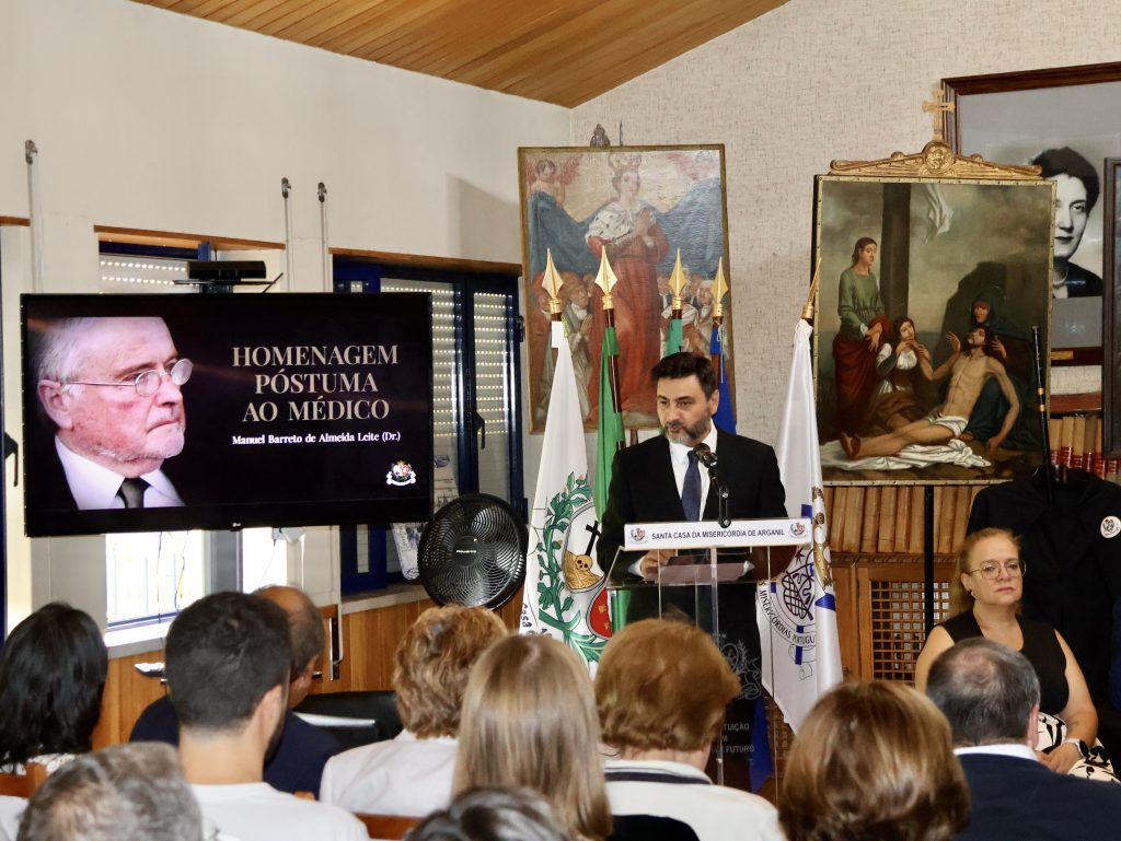 Durante a cerimónia, o presidente da Secção Regional do Centro da Ordem dos Médicos, Professor Manuel Teixeira Veríssimo, enalteceu a iniciativa da Santa Casa da Misericórdia de Arganil, felicitando-a pela justa homenagem prestada ao Dr. Manuel Barreto de Almeida Leite. Sublinhou a importância de reconhecer “algo que, infelizmente, tende a desvanecer-se com o tempo e com o avanço da sociedade e da ciência — e que é essencial — a entrega dos médicos às pessoas”.