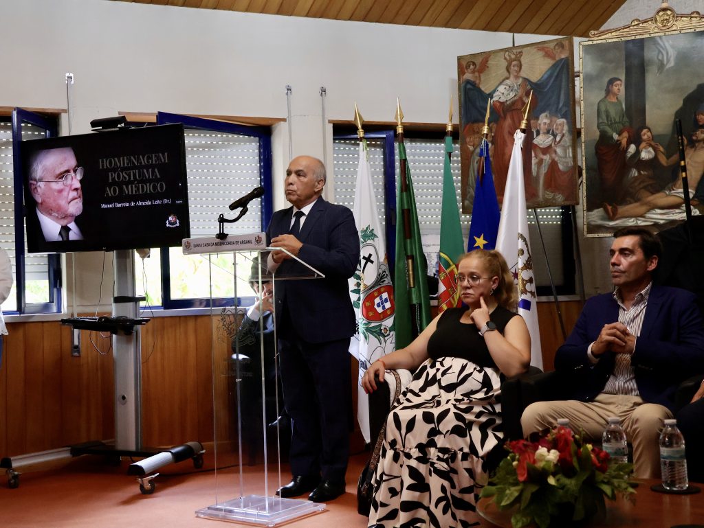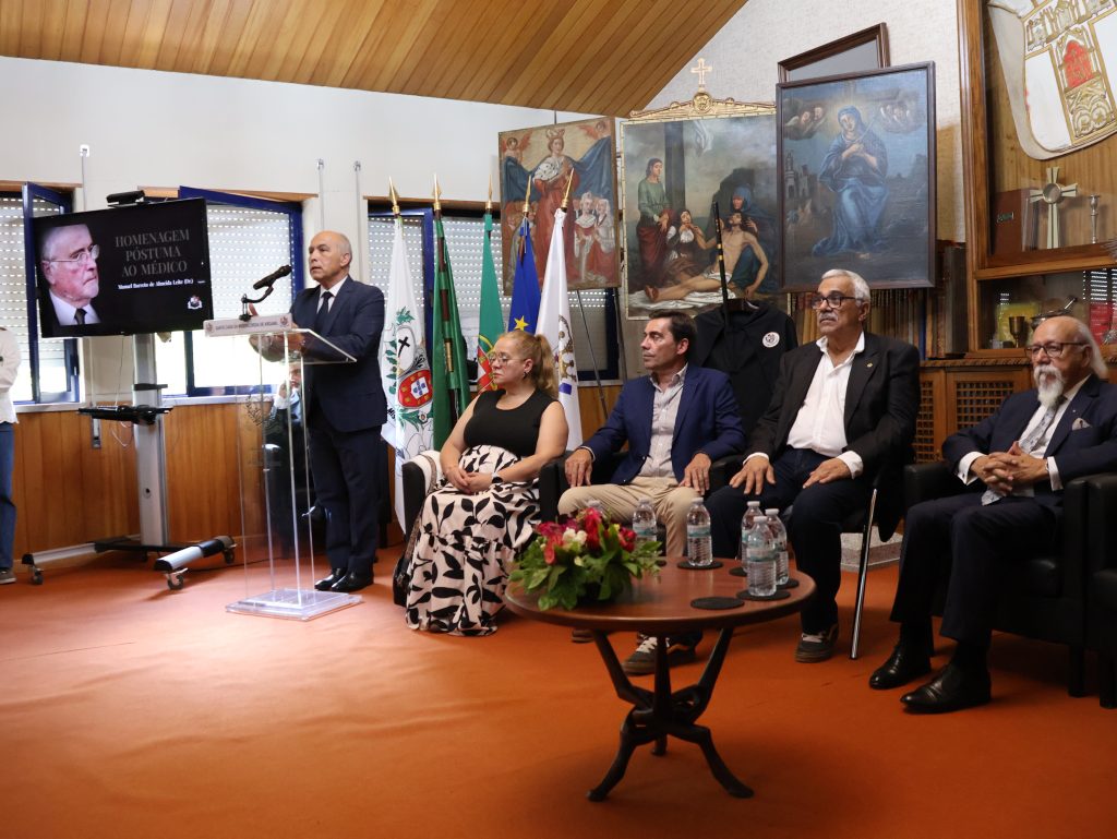 O presidente destacou ainda que o homenageado “foi um médico que assumiu um compromisso científico com os seus pacientes, como todos os médicos devem fazer, mas também um compromisso humanista, que representa a outra dimensão fundamental da medicina”. Palavras que espelham a profunda admiração e respeito pelo legado de um médico que soube unir conhecimento e humanidade ao serviço da comunidade. Para Manuel Teixeira Veríssimo, a Medicina divide-se em duas partes: a da Arte e a parte da Ciência. A primeira, dizendo respeito à relação médico-doente e, a segunda, no que concerne ao tratamento das doenças, cada vez mais difíceis, mas que, graças ao progresso científico, nos trazem maior longevidade. “Ao longo dos últimos anos tem-se valorizado mais a parte da ciência, mas não nos devemos esquecer da parte da arte. Por isso, o Dr. Manuel Barreto de Almeida Leite foi um, de entre muitos, que cultivou essa parte da Arte na medicina.” Algo a que, a seu ver, se deve estar em destaque, especialmente, numa época em que a Inteligência Artificial ganha cada vez mais importância e que nos poderá afastar da relação pessoal. “É fundamental esse contributo humanista, a par do conhecimento científico”, sublinhou.