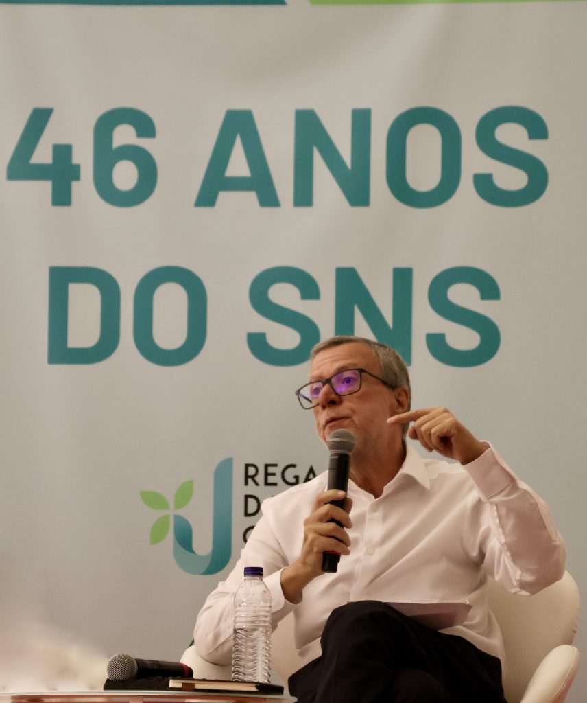 Um tributo à Revolução de Abril e aos fundadores do SNS: O presidente da SRCOM iniciou a sua intervenção sublinhando que o SNS é “a maior e melhor construção da Revolução de Abril”, recordando o papel determinante de dois conimbricenses na sua fundação: o Dr. António Arnaut, considerado o “pai do SNS”, e o Professor Mário Mendes, responsável pela sua operacionalização. Ambos foram homenageados como figuras centrais na criação de um sistema que viria a transformar o acesso à saúde em Portugal.
