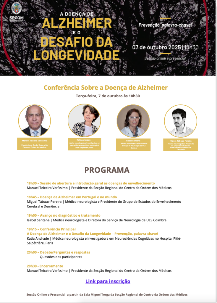 Secção Regional do Centro da Ordem dos Médicos acolheu a conferência/debate “A Doença de Alzheimer e o Desafio da Longevidade – Prevenção, palavra-chave!”, no dia 7 de outubro, terça-feira, numa sessão em formato presencial e online que juntou mais de 200 participantes
