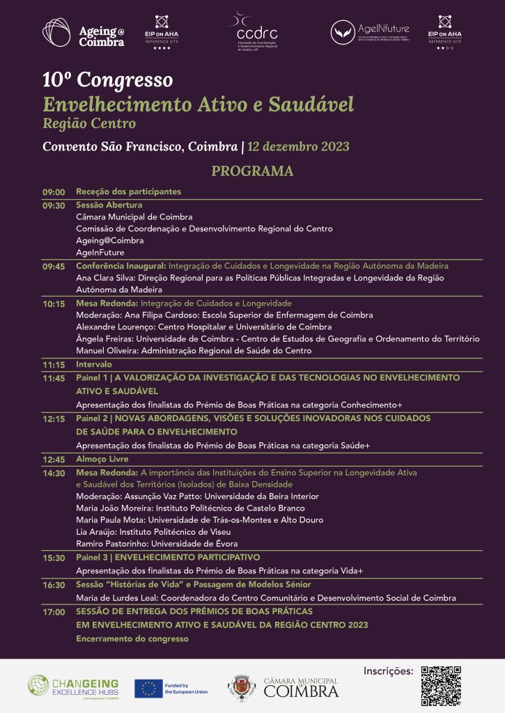 O 10º Congresso em Envelhecimento Ativo e Saudável terá lugar no dia 12 de dezembro de 2023, no Convento São Francisco em Coimbra, com abertura do secretariado às 09:00.