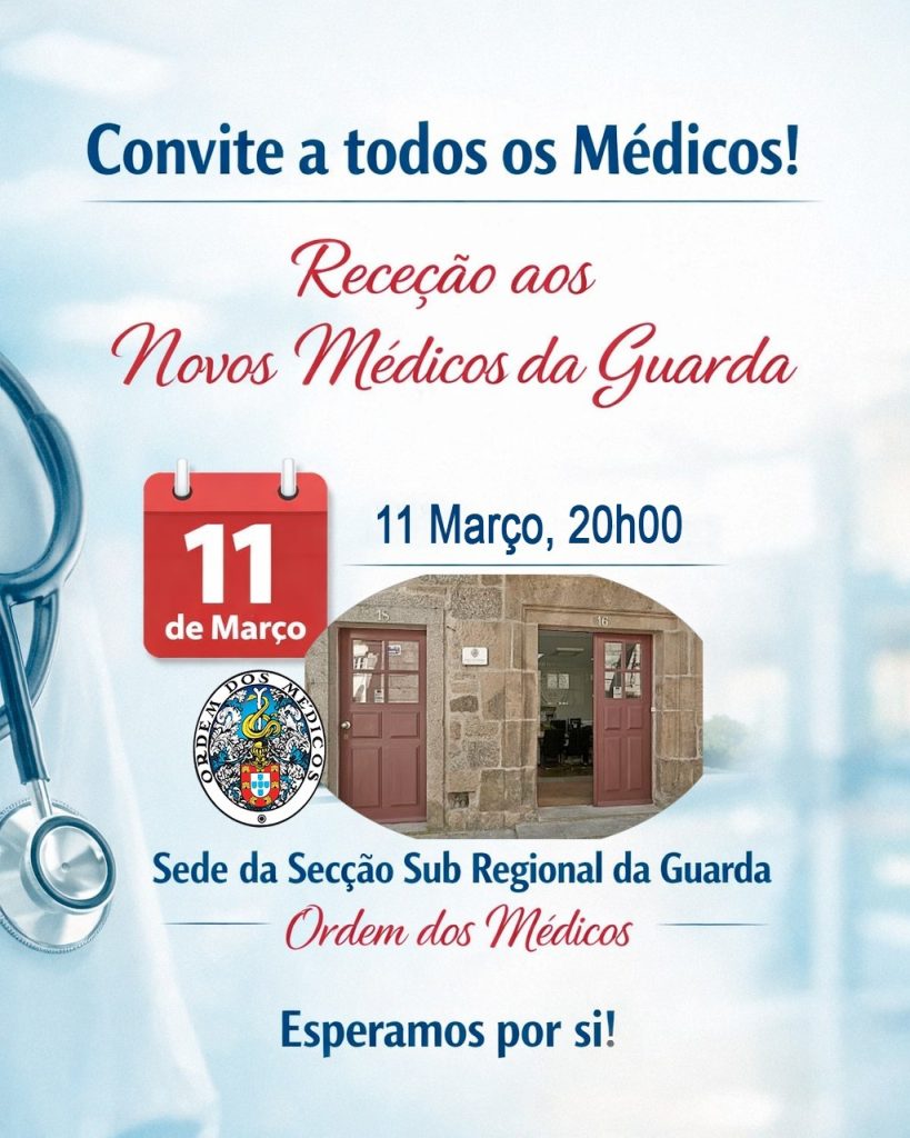 Na próxima quarta-feira dia 11 de Março, pelas 20h00 a Secção Sub Regional da Guarda da Ordem dos Médicos irá fazer a Cerimónia de Receção aos Novos Médicos da ULS Guarda 2026.