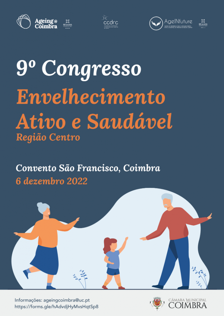 O Consórcio Ageing@Coimbra irá realizar o 9º Congresso em Envelhecimento Ativo e Saudável, que terá lugar no dia 6 de dezembro de 2022, no Convento São Francisco em Coimbra, com abertura do secretariado às 09h00.