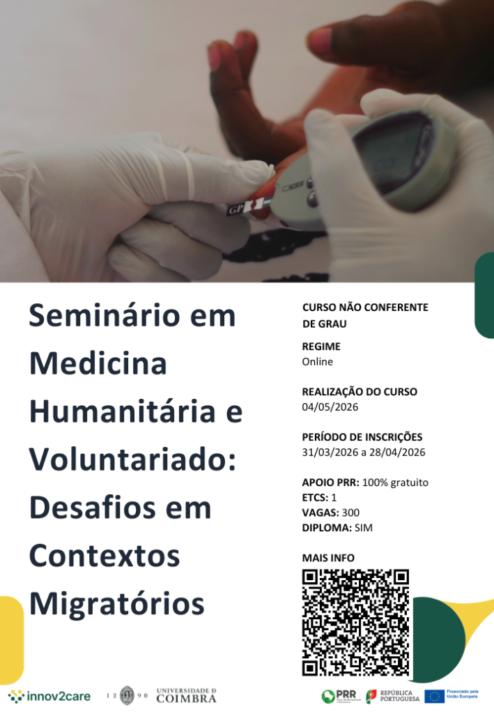 Estes cursos realizam-se no âmbito do Projeto INNOV2CARE – Inovar para Cuidar, financiado pelo Mecanismo de Recuperação e Resiliência da Comissão Europeia, que apoia a modernização da formação e a adequação dos cuidados de saúde, num contexto cada vez mais mediado por ferramentas digitais e tecnológicas.