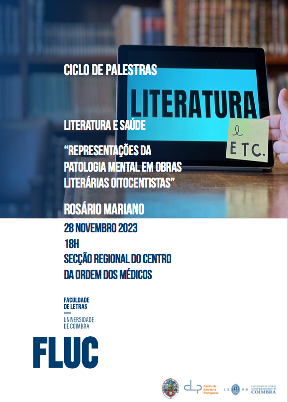 No próximo dia 28 de novembro, pelas 18h00, na Sala Miguel Torga da Secção Regional do Centro da Ordem dos Médicos, irá decorrer a conferência ministrada pela Professora Rosário Neto Mariano, docente da Faculdade de Letras da Universidade de Coimbra (FLUC) com o título “Literatura e Saúde. Representações da Patologia mental em obras literárias oitocentistas“.