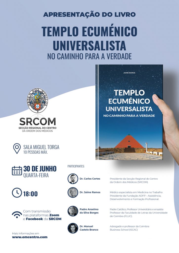 Esta quarta-feira, dia 30 de junho, a Secção Regional do Centro da Ordem dos Médicos (SRCOM) promove a sessão de apresentação do livro “Templo Ecuménico Universalista, No Caminho para a Verdade”, com início marcado para as 18h00. A apresentação vai contar com as intervenções de: