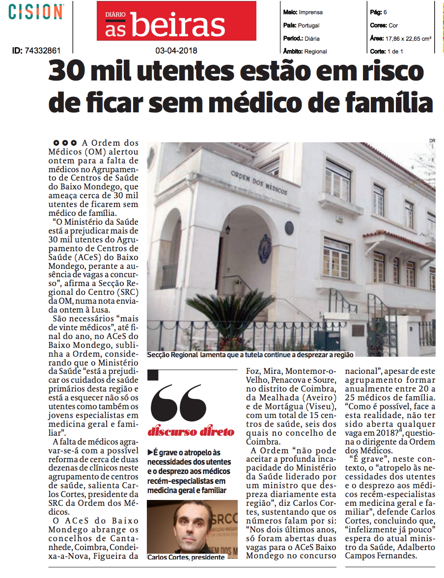 30 mil utentes do Baixo Mondego podem ficar sem médico de família