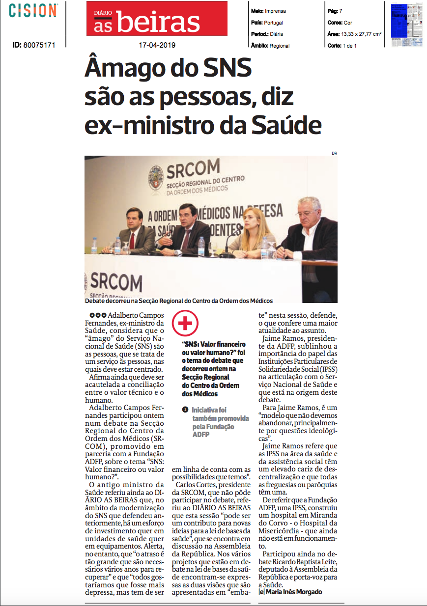 Ãmago do SNS são as pessoas, diz ex-ministro da Saúde
