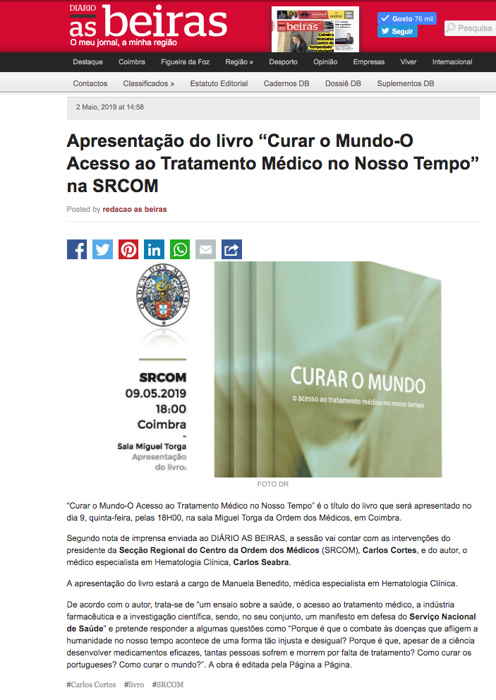 Apresentação do livro “Curar o Mundo – O Acesso ao Tratamento Médico no Nosso Tempo”