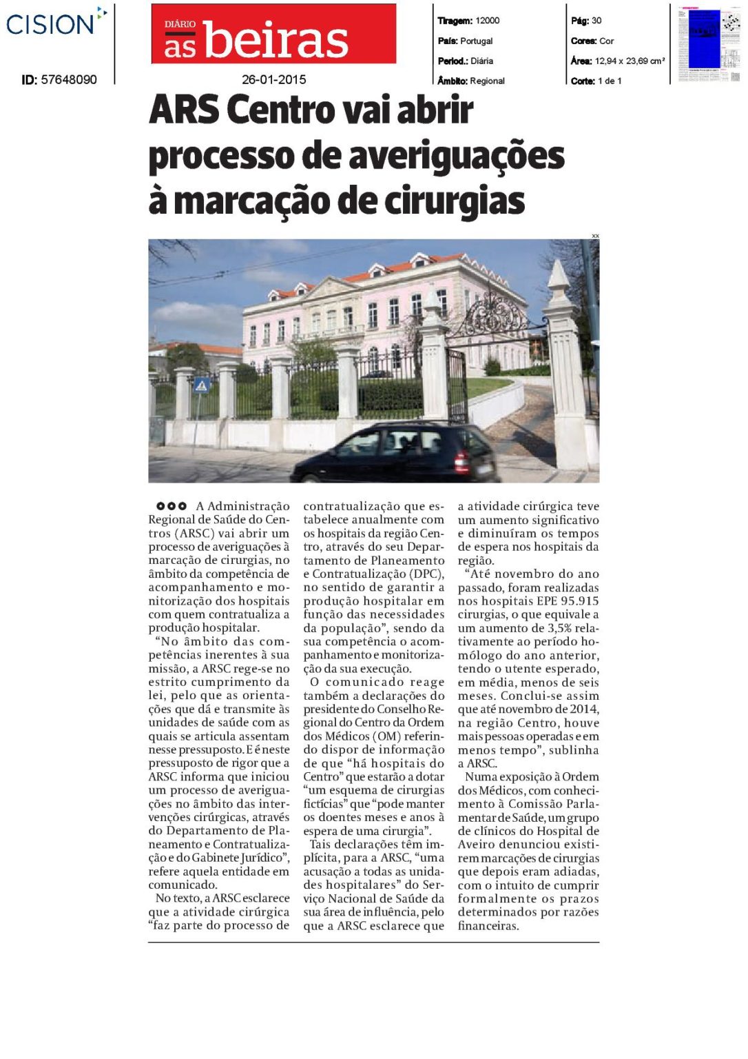 ARS Centro vai abrir processo de averiguações à marcação de cirurgias