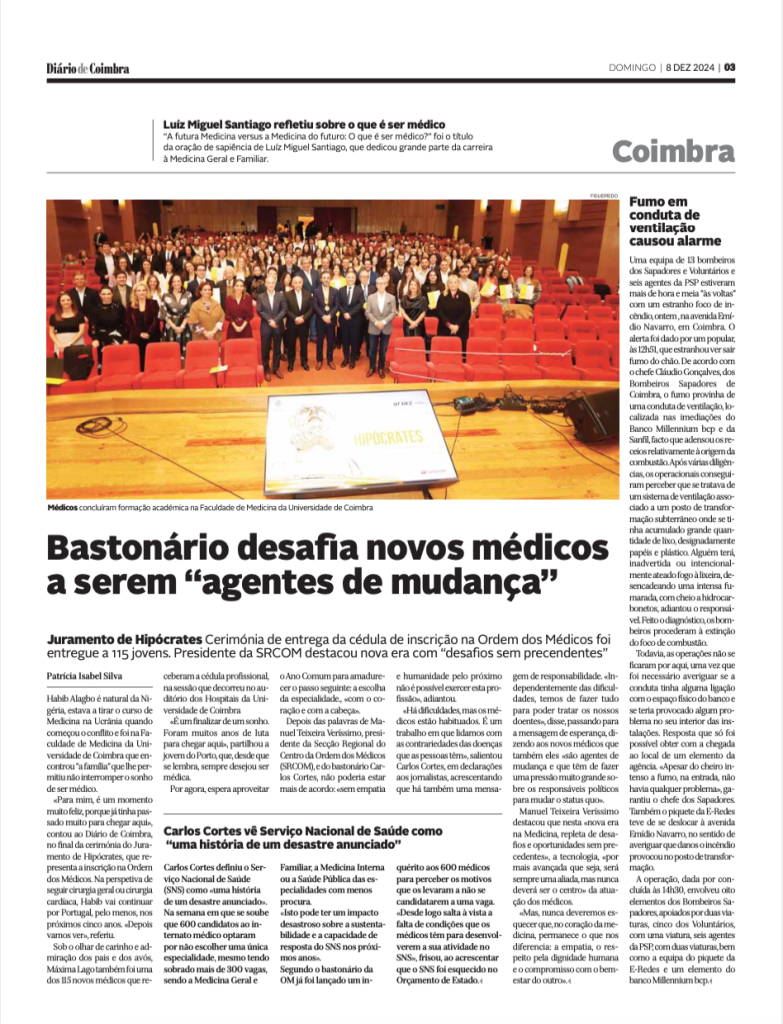 Bastonário desafia novos médicos a serem “agentes de mudança”