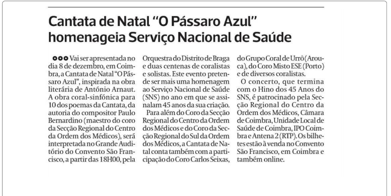 Cantata de Natal “O Pássaro Azul” homenageia Serviço Nacional de Saúde