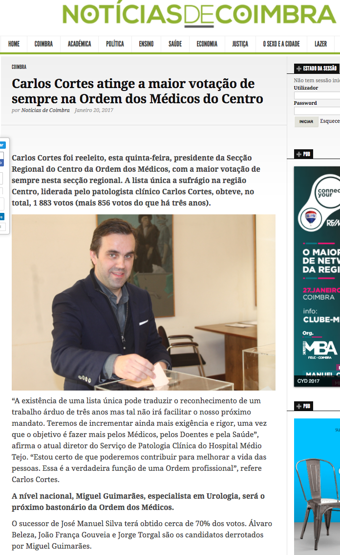 Carlos Cortes atinge a maior votação de sempre na Ordem dos Médicos do Centro