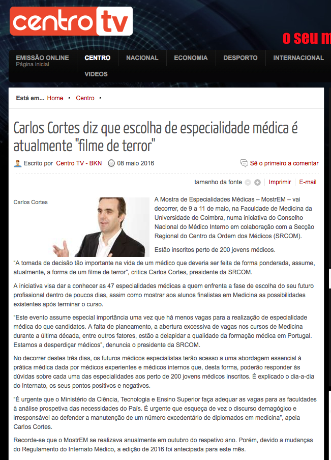 Carlos Cortes diz que escolha de especialidade médica é atualmente “um filme de terror”