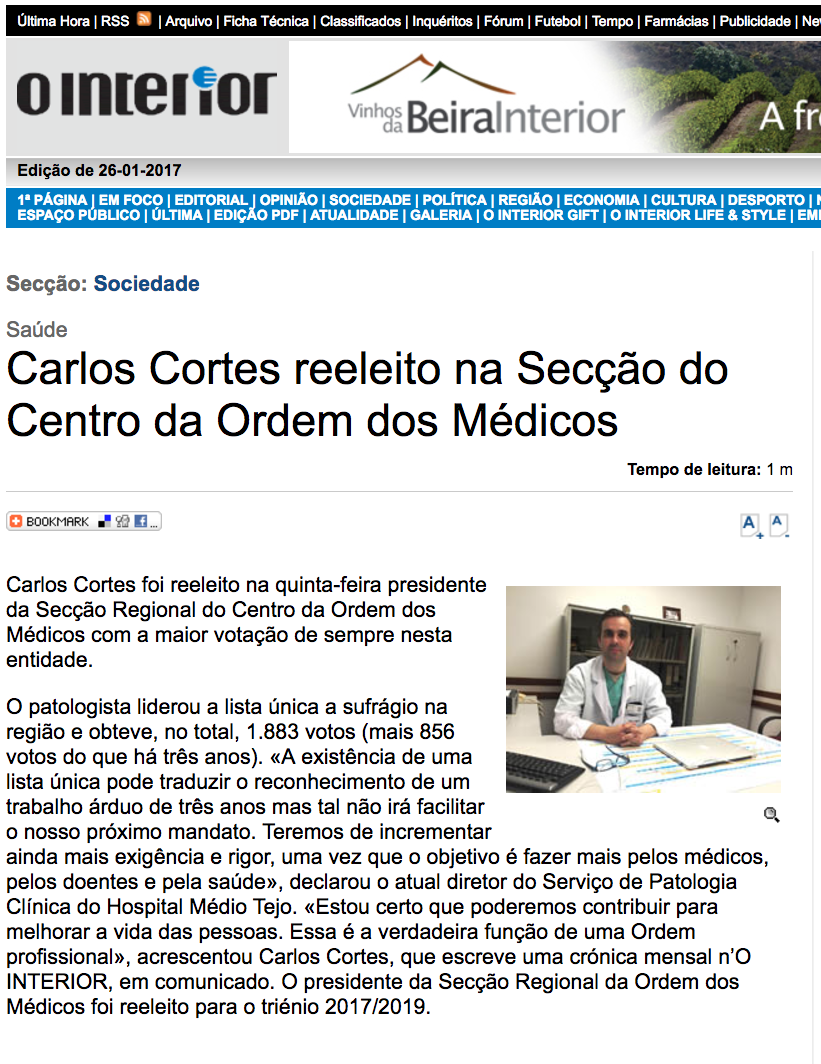 Carlos Cortes reeleito na Secção do Centro da Ordem dos Médicos