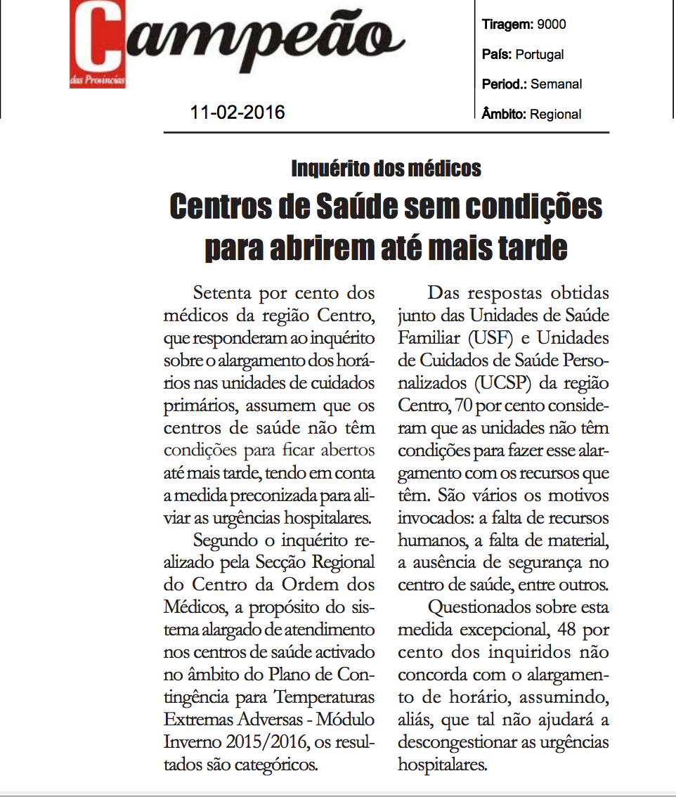Centros de Saúde sem condições para abrirem até mais tarde