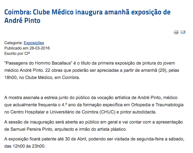 Clube Médico inaugura amanhã exposição de André Pinto