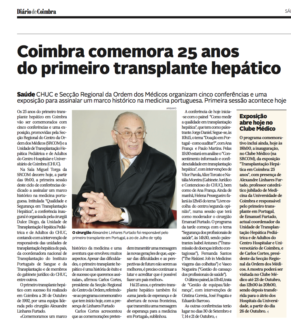 Coimbra comemora 25 anos do primeiro transplante hepático
