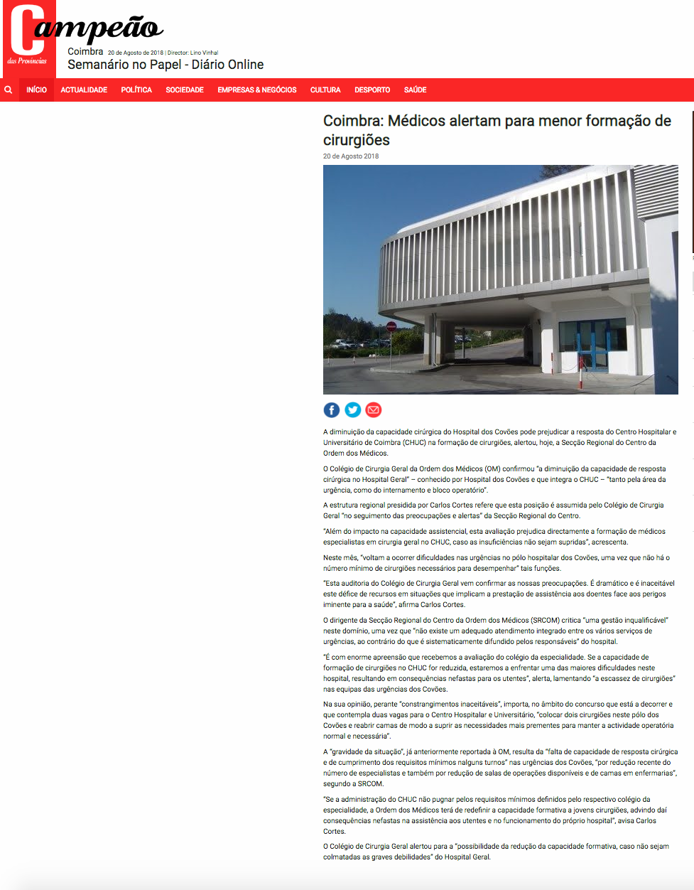 Coimbra: Médicos alertam para menor formação de cirurgiões