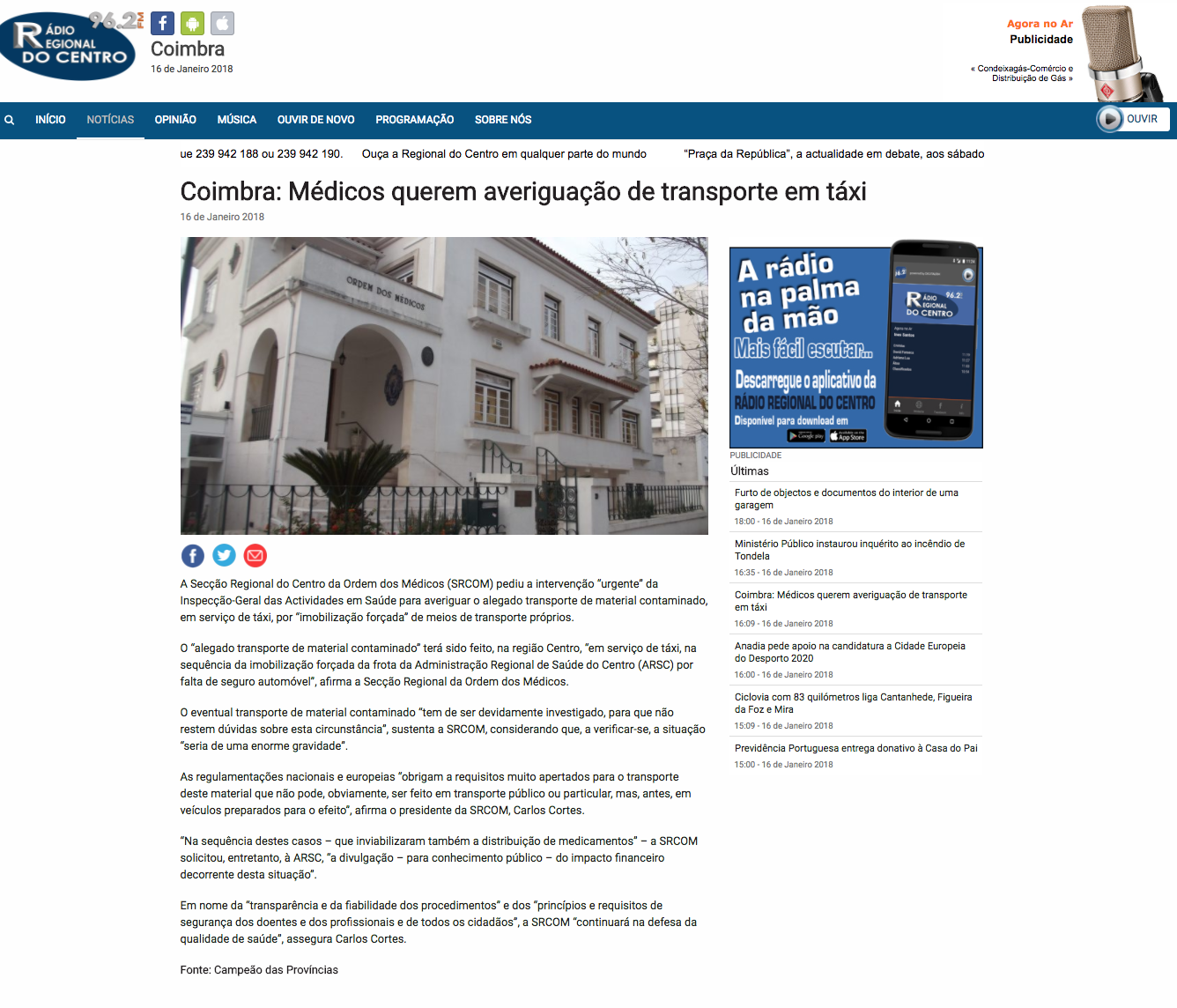 Coimbra: Médicos querem averiguação de transporte em táxi