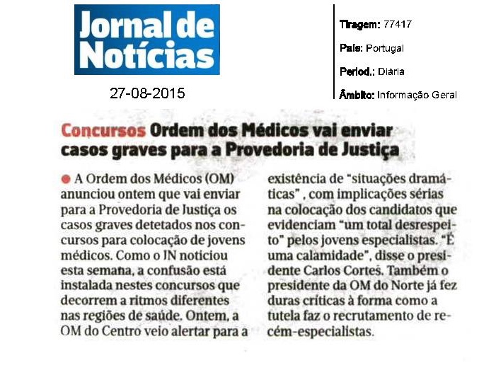 Concursos: Ordem dos Médicos vai enviar casos graves para a Provedoria de Justiça