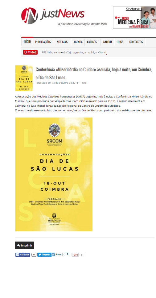 Conferência “Misericórdia no Cuidar” assinala, hoje à noite, em Coimbra, o Dia de São Lucas