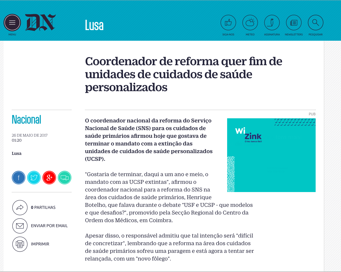 Coordenador de reforma quer fim de unidades de cuidados de saúde personalizados