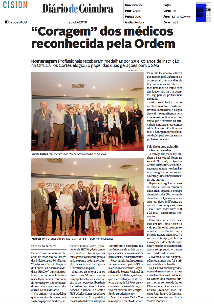 “Coragem” dos médicos reconhecida pela Ordem