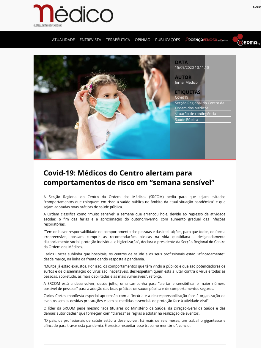 Covid-19 | Médicos do Centro alertam para semana ‘sensível’