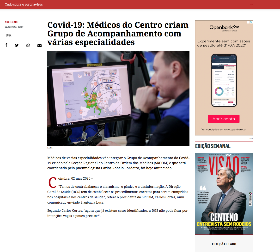 Covid-19 | Médicos do Centro criam grupo de acompanhamento com várias especialidades