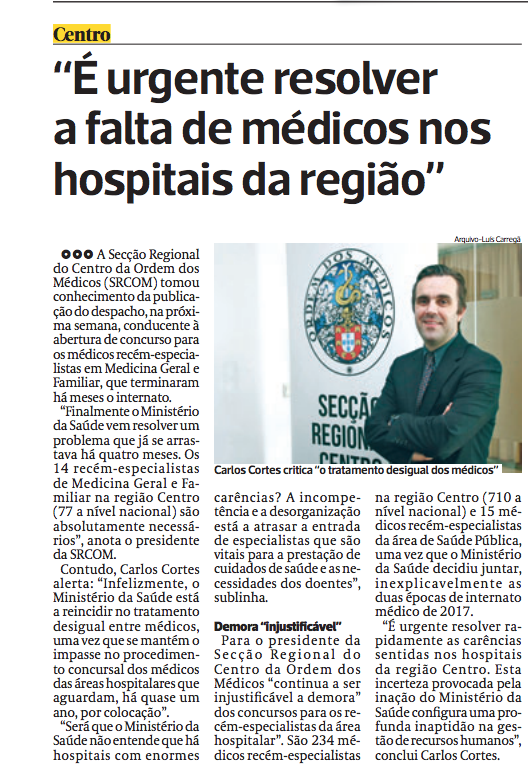 “É urgente resolver a falta de médicos nos hospitais da Região”