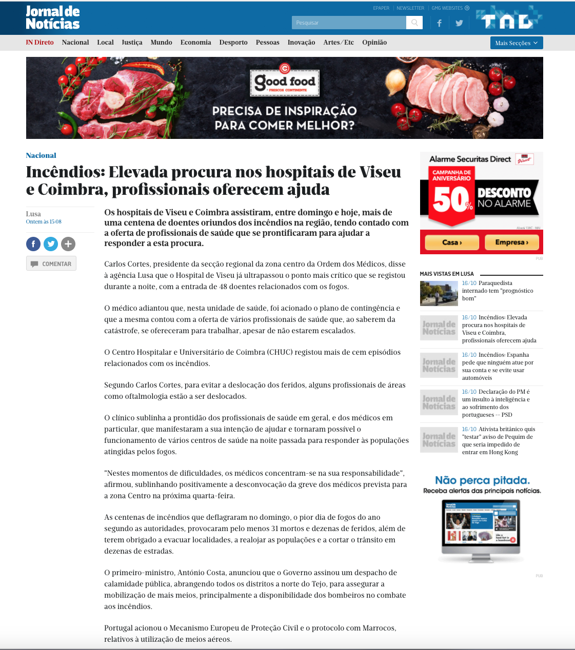Elevada procura nos hospitais de Viseu e Coimbra, profissionais oferecem ajuda