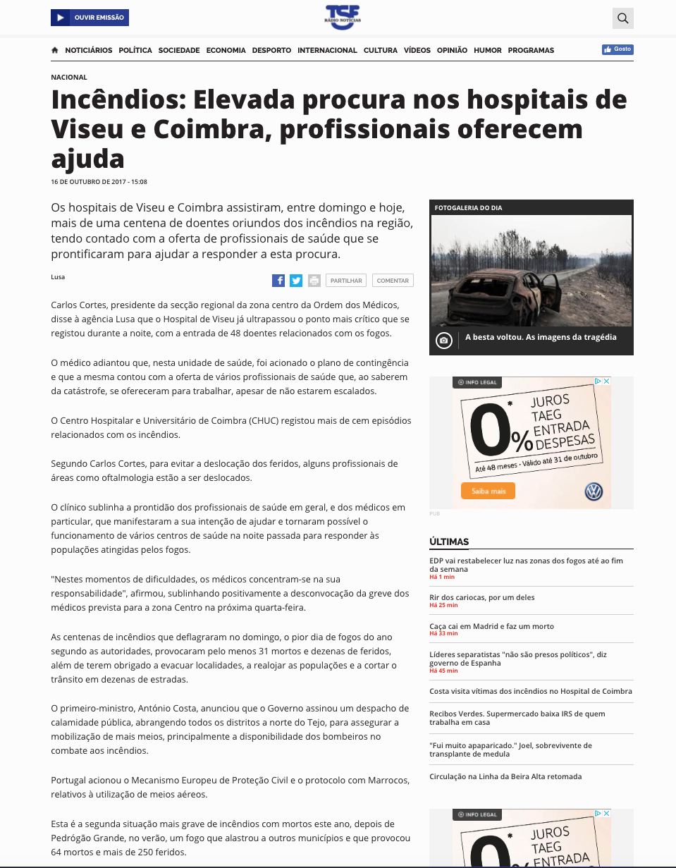 Elevada procura nos hospitais de Viseu e Coimbra, profissionais oferecem ajuda