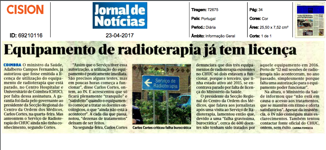 Equipamento de radioterapia já tem licença